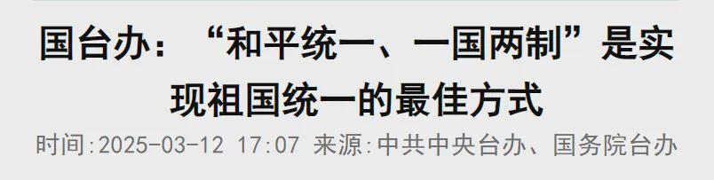 中国始终强调,以和平方式实现祖国统一是最符合两岸同胞利益的选择。我们从来不放弃使用武力的承诺,但那始终是针对外部干预和极少数分裂势力的最后选项,而不是首选方式。